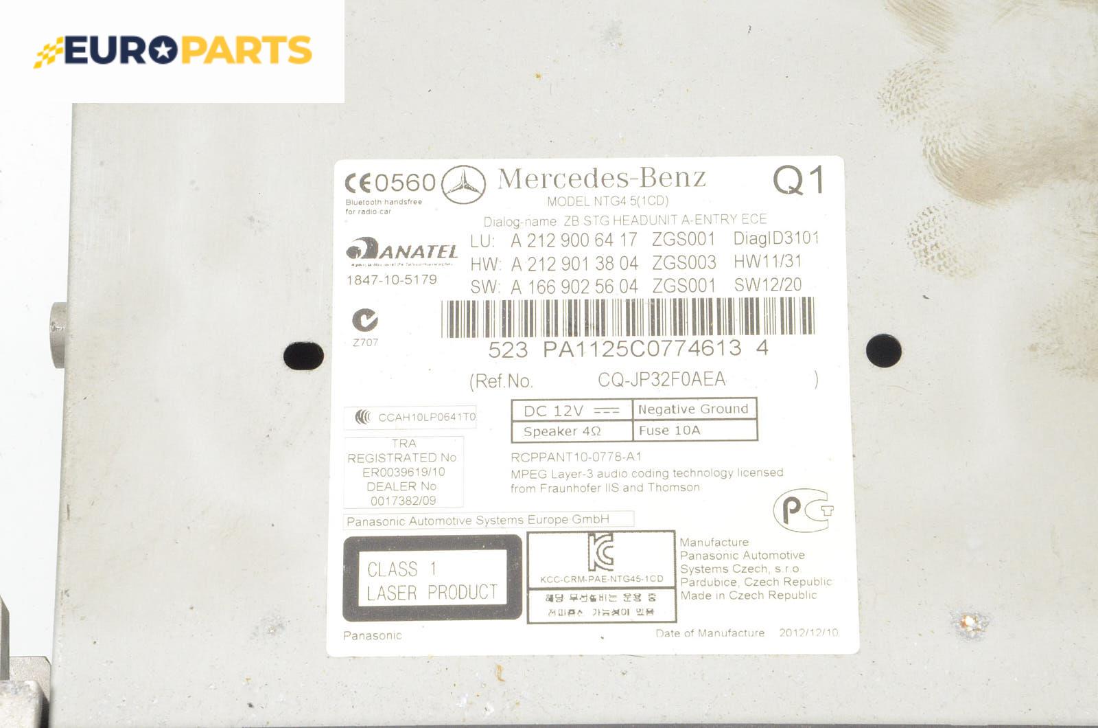 Мултимедия за Mercedes-Benz E-Class Sedan (W212) (01.2009 - 12.2016), № A 212 900 64 17