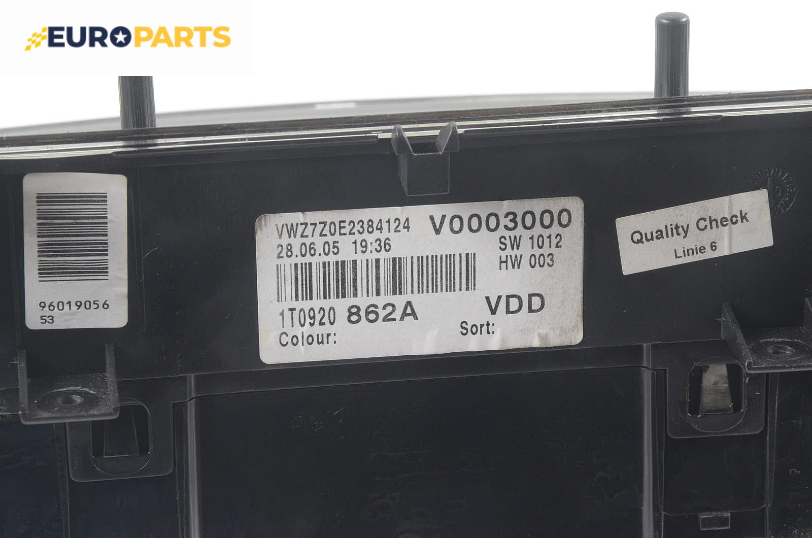 Километраж за Volkswagen Touran Minivan (02.2003 - 05.2010) 2.0 TDI 16V, 140 к.с., № 1T0 920 862 A