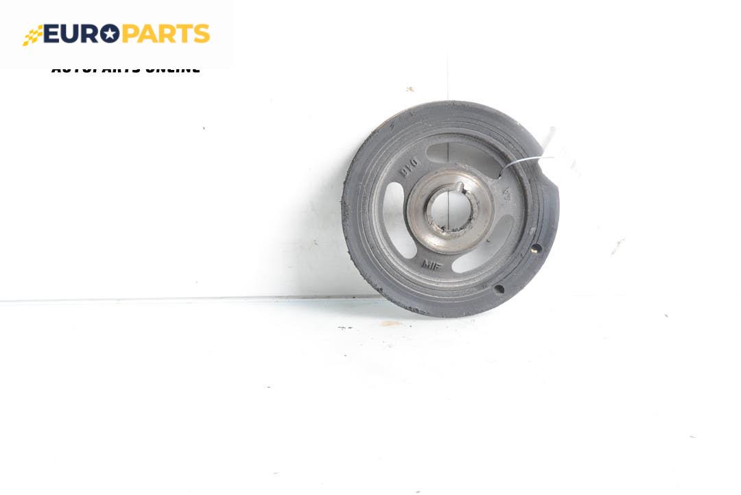 Тя се намира в предната част на коляновия вал, а конструкцията й представлява метална част (вътрешна), гумена сърцевина и външен метален обръч, върху който се поставя ремък.