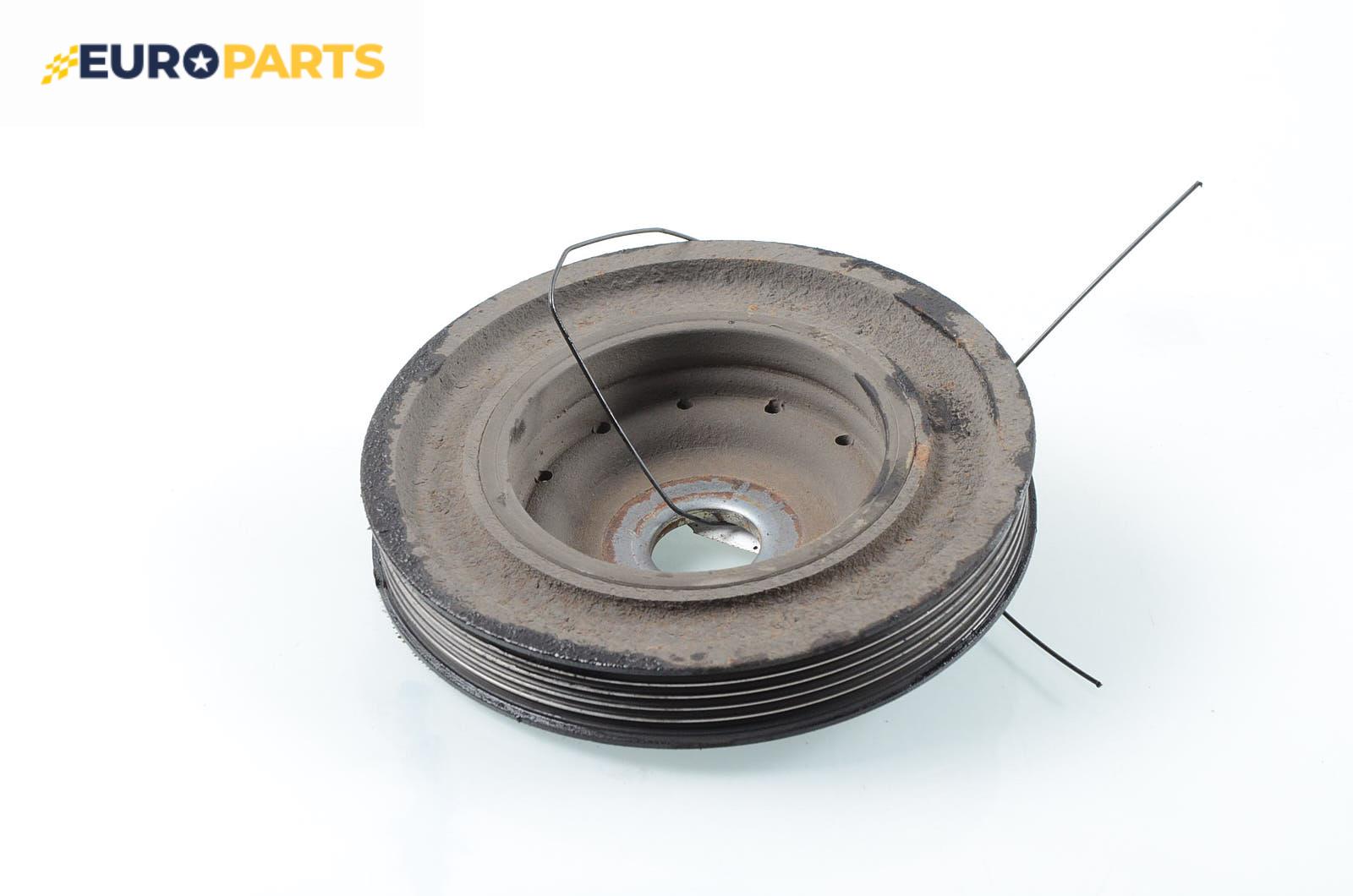 Тя се намира в предната част на коляновия вал, а конструкцията й представлява метална част (вътрешна), гумена сърцевина и външен метален обръч, върху който се поставя ремък.