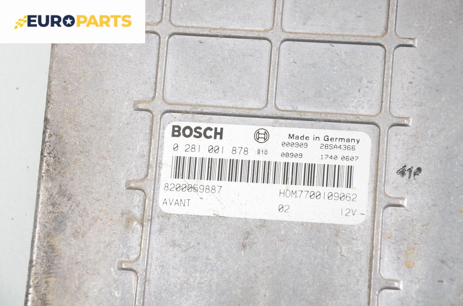 Компютър с контактен ключ за Renault Clio II Hatchback (09.1998 - 09.2005) 1.9 dTi (B/CB0U), 80 к.с., № Bosch 0 281 001 878