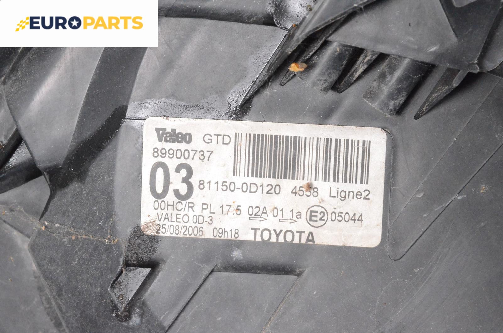 Фар за Toyota Yaris Hatchback II (01.2005 - 12.2014), хечбек, позиция: лява, № Valeo 89900737