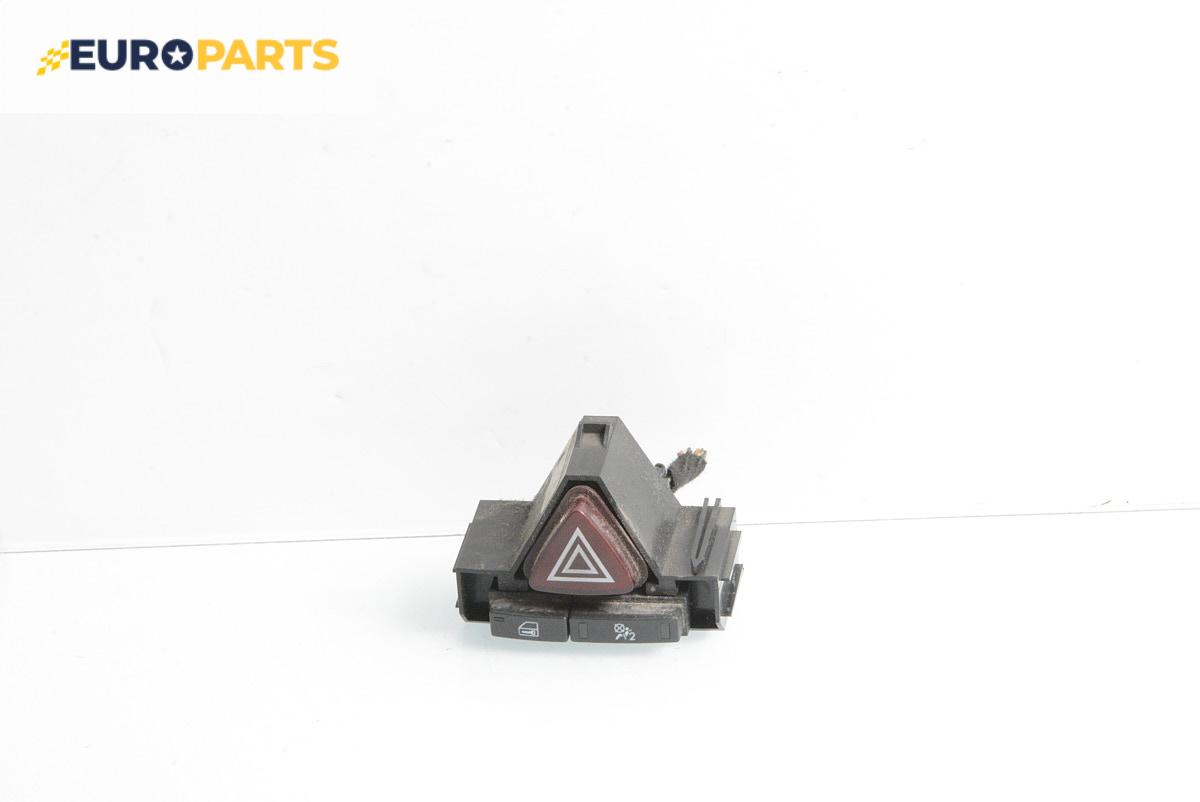 Бутонът на аварийните светлини се изважда с дърпане, като си помагате с отверка. Като имате контакт – раздвижете малко крушката, има вероятност контактът да е хлабав и нещата да се оправят и без смяна. Ако се налага смяна – сваляте централната конзола, изваждате основата на бутона и сменяте лампичката.