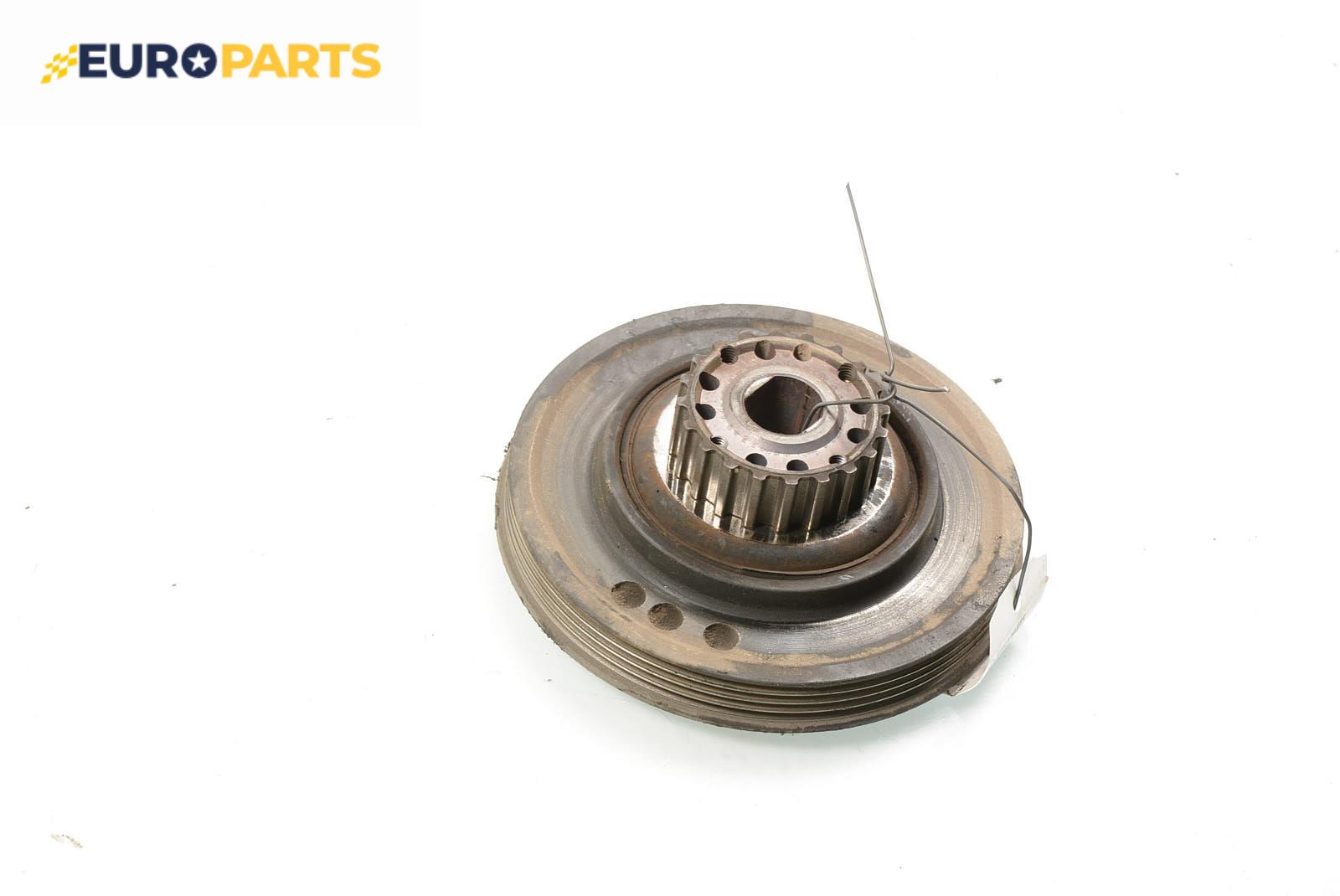 Тя се намира в предната част на коляновия вал, а конструкцията й представлява метална част (вътрешна), гумена сърцевина и външен метален обръч, върху който се поставя ремък.