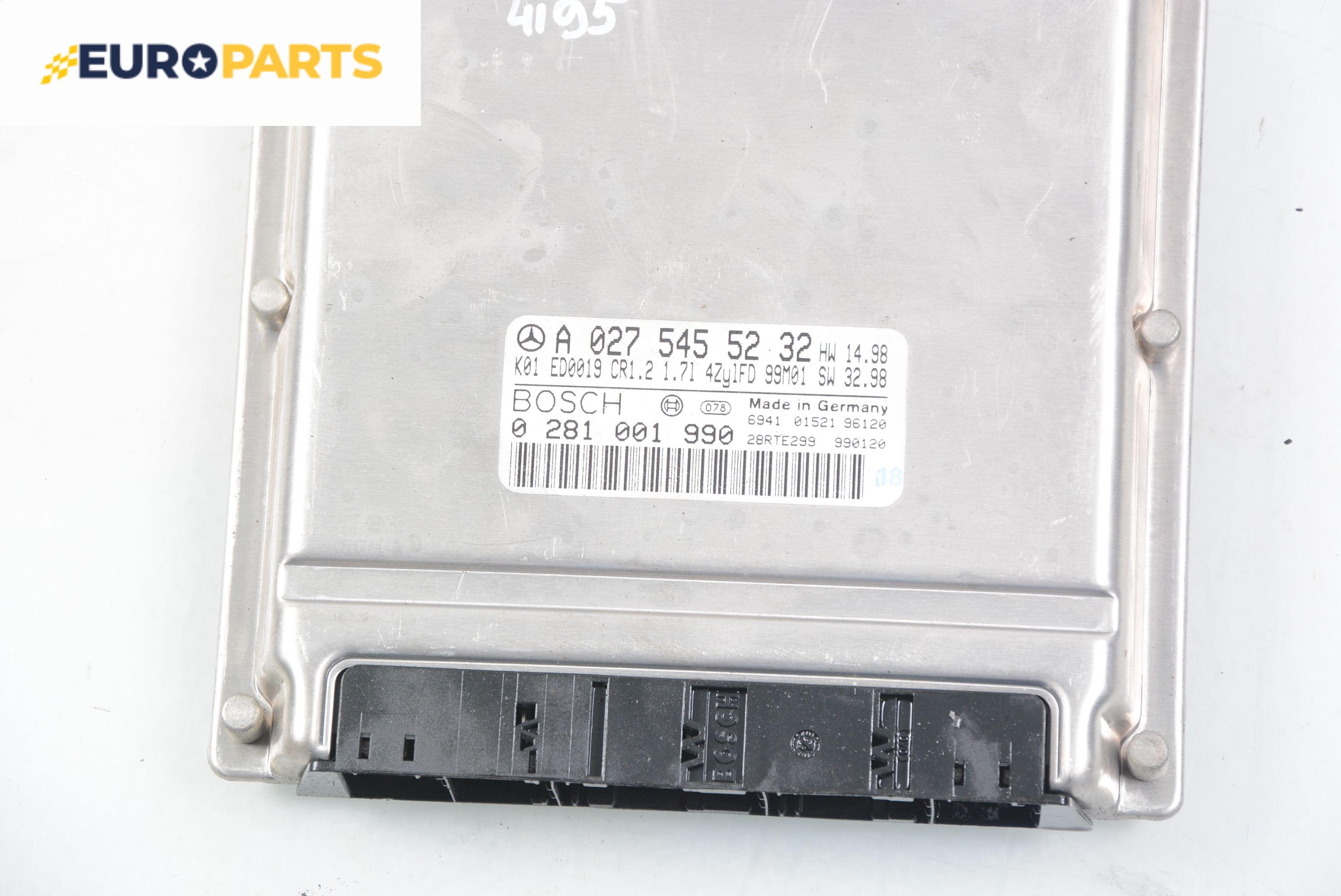 Компютър с контактен ключ и имобилайзер за Mercedes-Benz A-Class Hatchback (W168) (07.1997 - 08.2004) A 170 CDI (168.008), 90 к.с., № Bosch 0 281 001 990