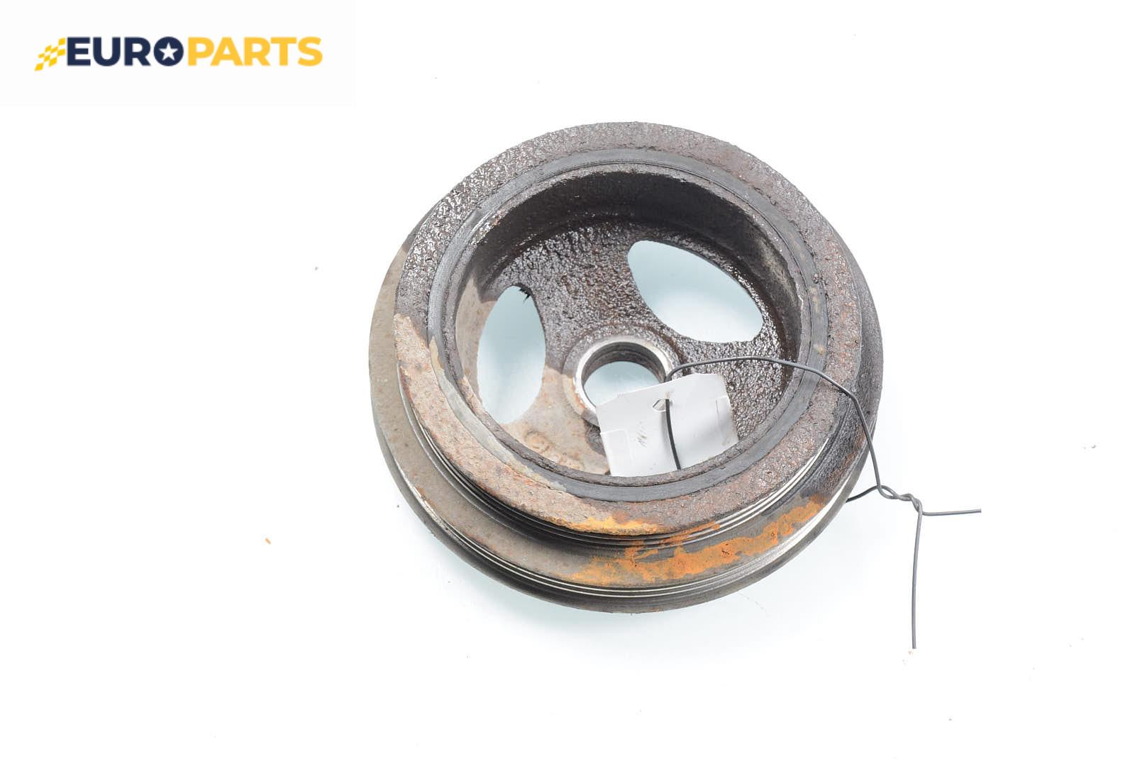 Тя се намира в предната част на коляновия вал, а конструкцията й представлява метална част (вътрешна), гумена сърцевина и външен метален обръч, върху който се поставя ремък.