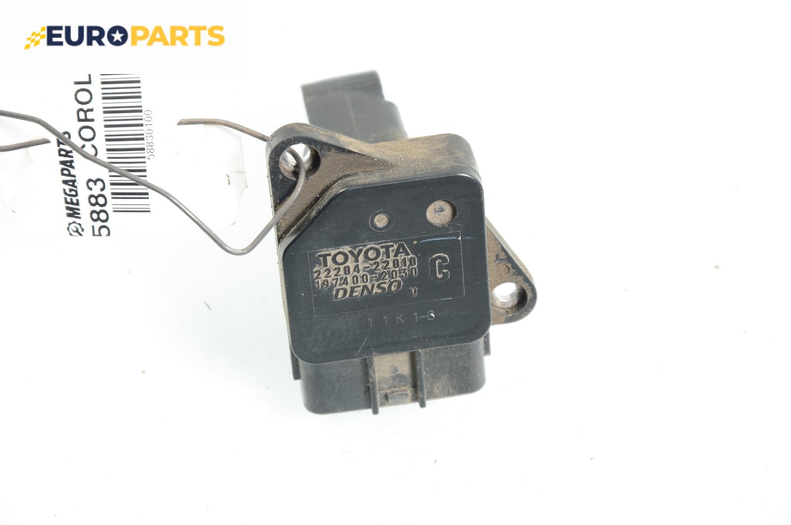 Дебитомер за Toyota Corolla Sedan IV (03.2001 - 03.2008) 1.6 VVT-i (ZZE121), 110 к.с., № Denso 197400-2030 / 22204-22010