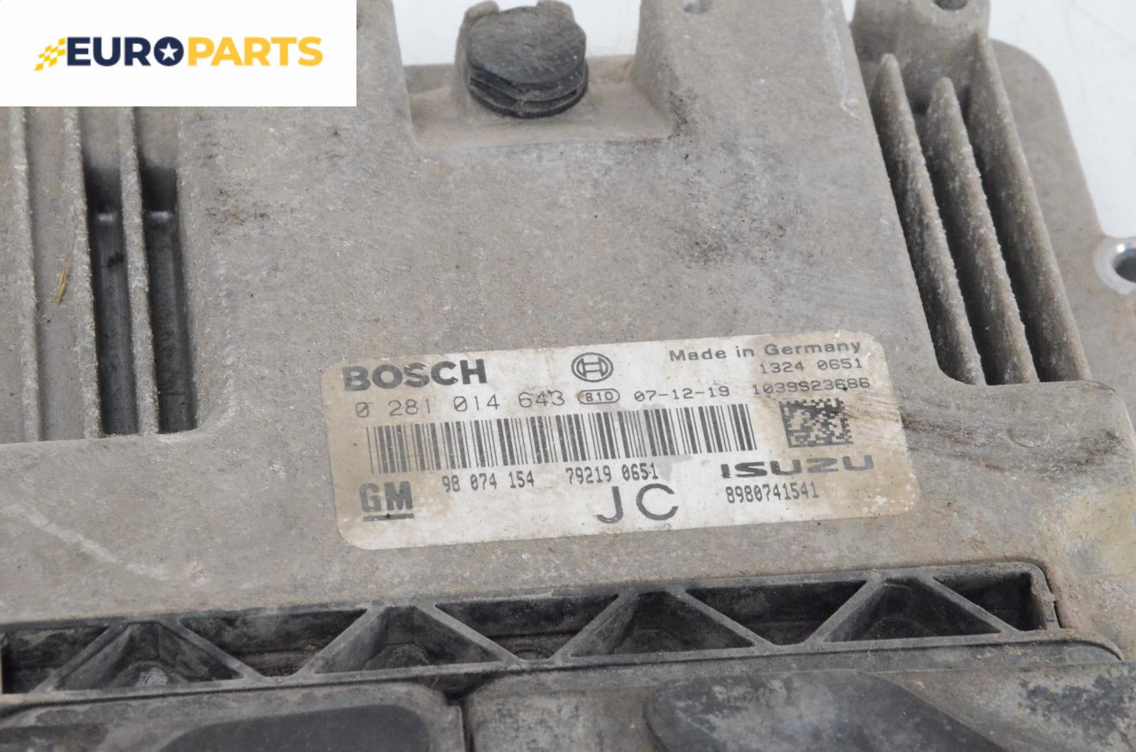 Компютър двигател за Opel Astra H Estate (08.2004 - 05.2014) 1.7 CDTI, 101 к.с., № Bosch 0 281 014 643 / 98874154